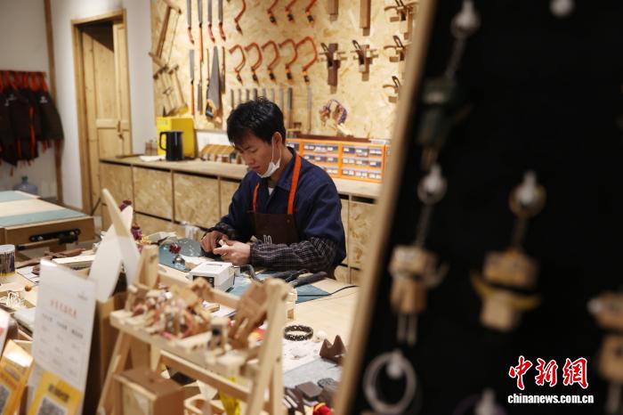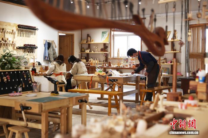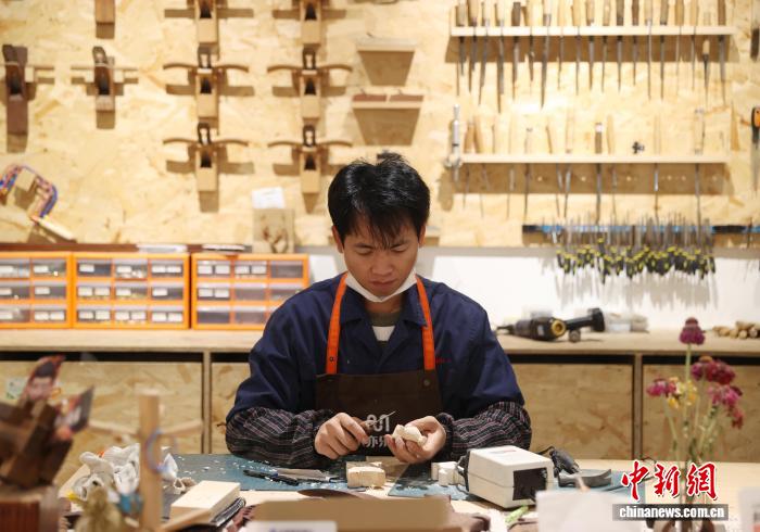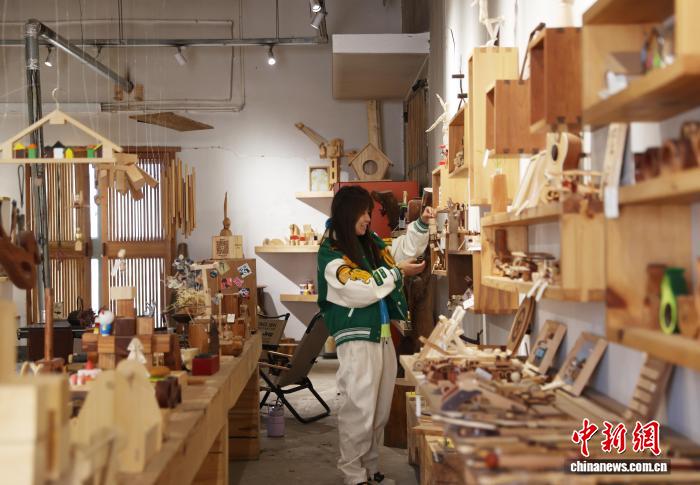 今日记者正在位于宁夏银川市贺兰县的“木亦乐乎”脚做木匠坊首创涌现区内乱瞧到,木量梳子、项圈、晃件等创意产物美不胜收,吸收着访客藏身咀嚼。而正在造做区,几位遥说而去的女孩正齐神提防天挨磨动手中的木材,雕刻着属于本身的“缓时间”。图为乘客正正在造做木造脚做。中新社记者 于晶 摄